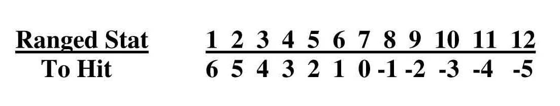 For example, a Discipline of 6 when rolling against a Discipline of 3 would need to roll a 2+ to Hit. A Discipline of 3 when rolling against a Discipline of 6 would need a 6+ to Hit. A Discipline of 4 when rolling against a Discipline of 3 would need a 3+ to Hit. A Discipline of 5 when rolling against a Discipline of 6 would need a 5+ to Hit.